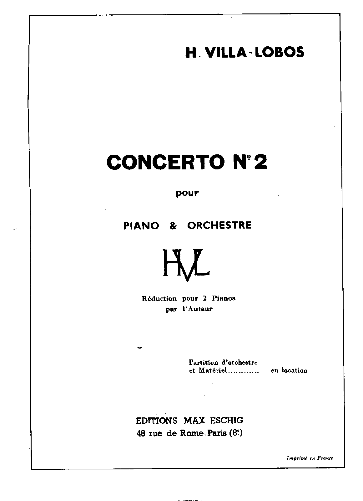 | First Performance. | 1950-4-21, Rio de Janeiro João de Souza Lima (piano) ; Orquestra do Teatro Municipal ; Villa-Lobos (cond.) |