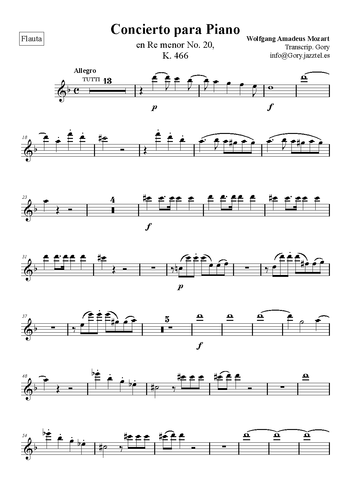 | Name Aliases | Piano Concerto No. 20 (Mozart); Klavierkonzert Nr. 2; Klavierkonzert d-Moll; Klavierkonzert in d-Moll; Pianoconcert nr. 20 (Mozart); d-moll zongoraverseny K. 466 |