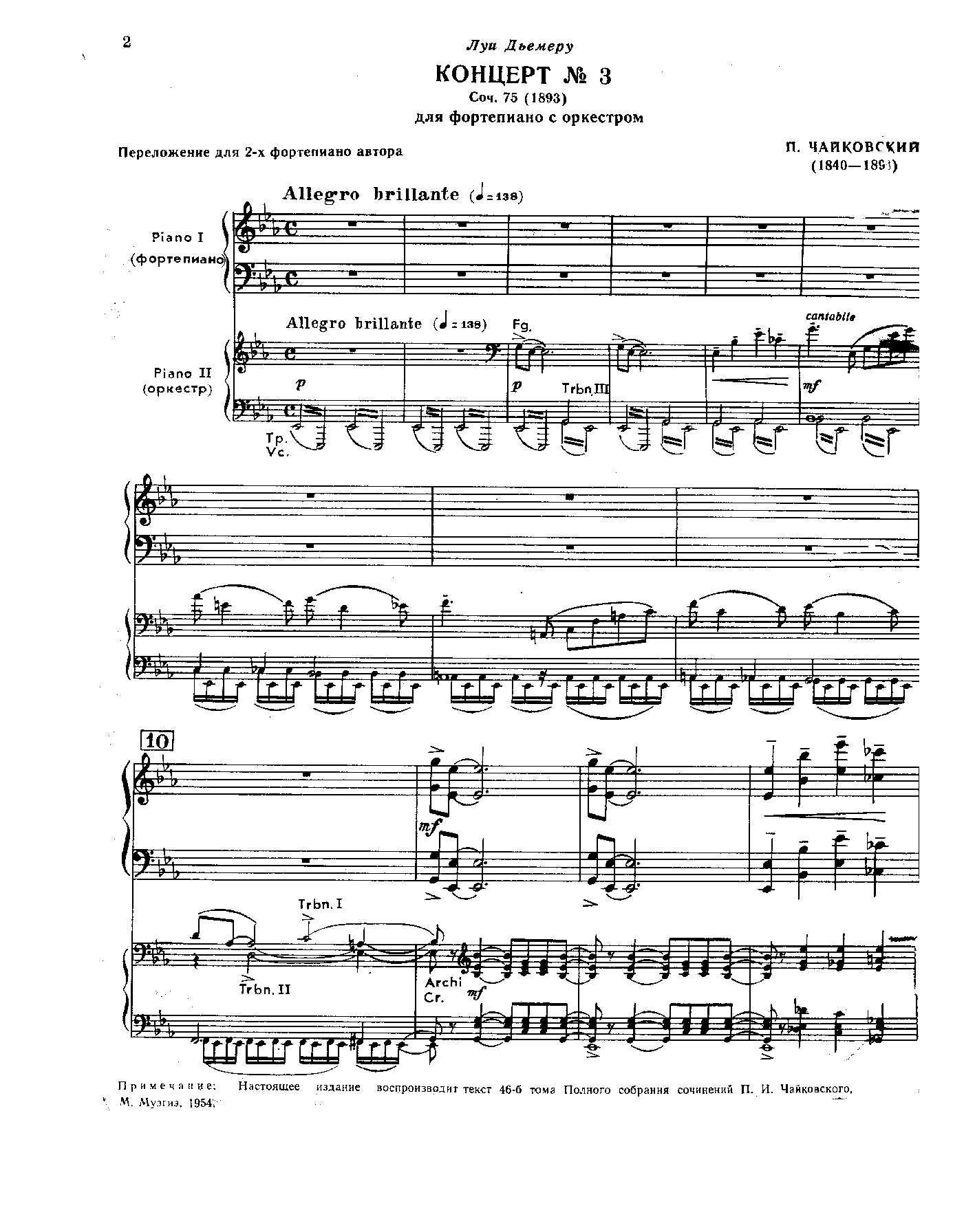 | Extra Information | Also arranged for 2 pianos by Tchaikovsky, 1893. There is some doubt as to whether Tchaikovsky intended the Andante and Finale, Op.79 to form the second and third movements of this concerto. |