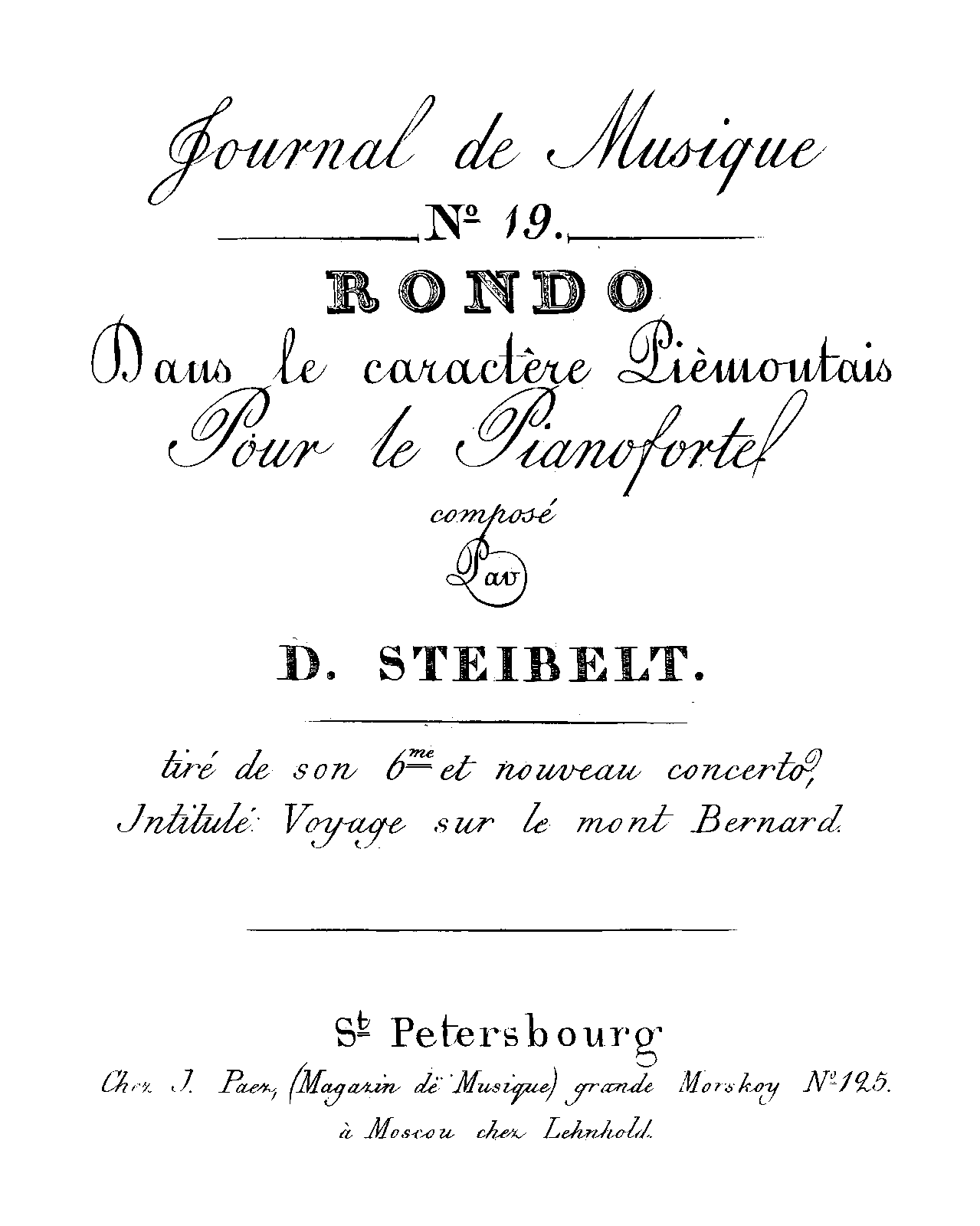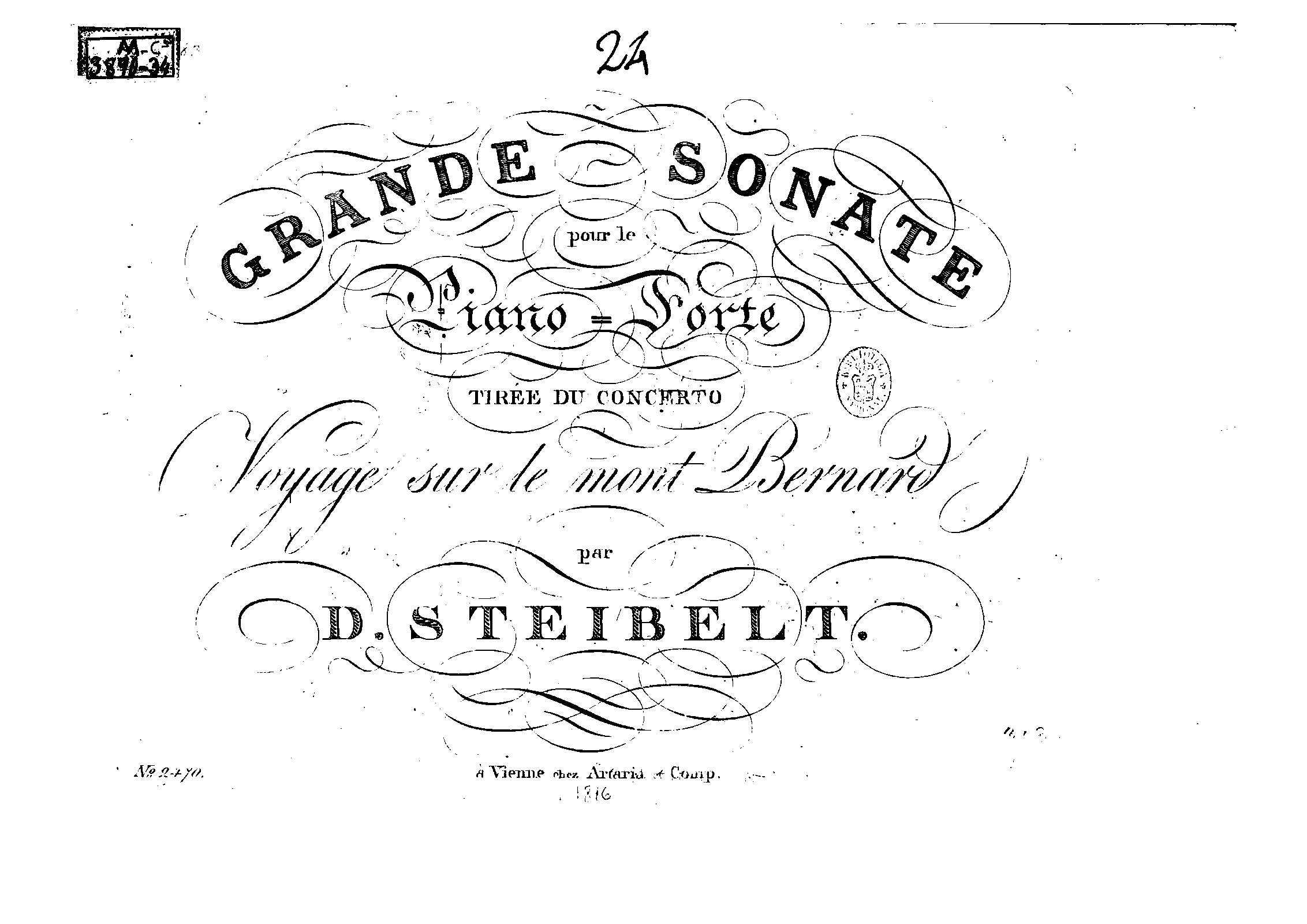 Concerto published in full by Janet et Cotelle in 1817 as "Voyage sur le Mont St Bernard, nouveau concerto pour le piano-forte avec accompagnement d'un grand-orchestre".