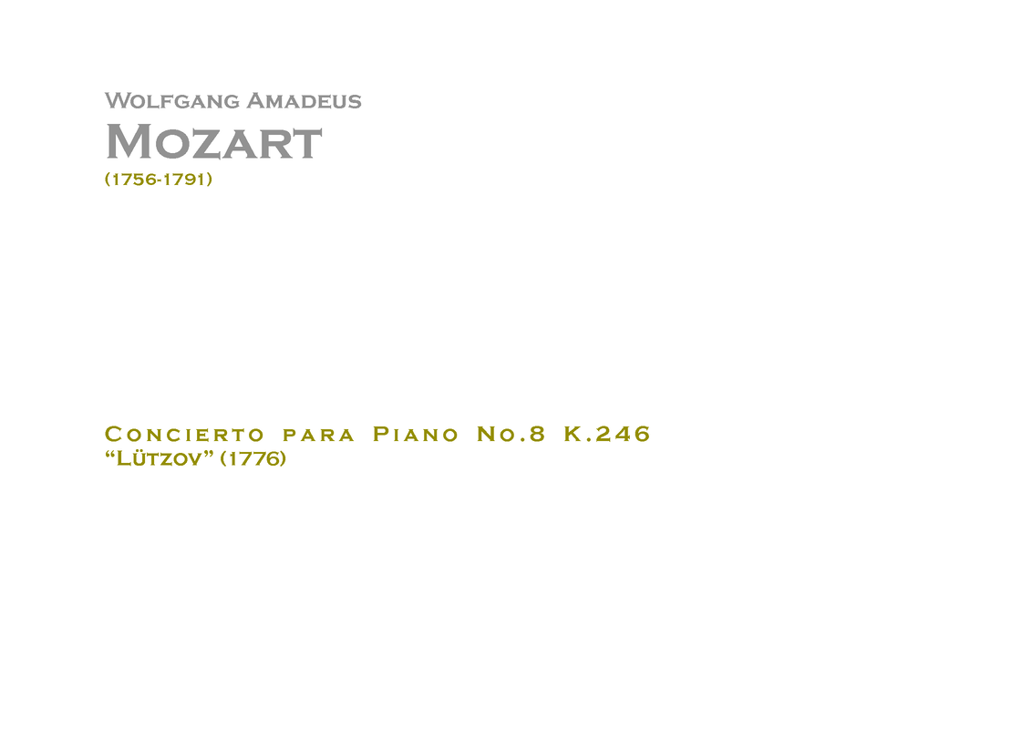 | Name Aliases | Klavierkonzert Nr. 8; Klavierkonzert C-Dur; Klavierkonzert in C-Dur; Pianoconcert nr. 8 (Mozart); C-dúr zongoraverseny K. 246; Lützow-koncert |