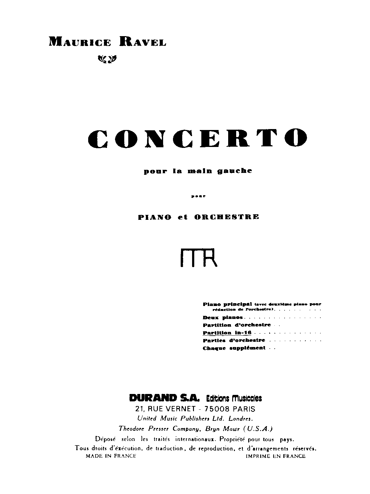 | Name Translations | Concerto para piano para a mão esquerda; 左手のためのピアノ協奏曲; 왼손을 위한 피아노 협주곡; Concierto para piano para la mano izquierda; Pianoconcert voor de linkerhand; |