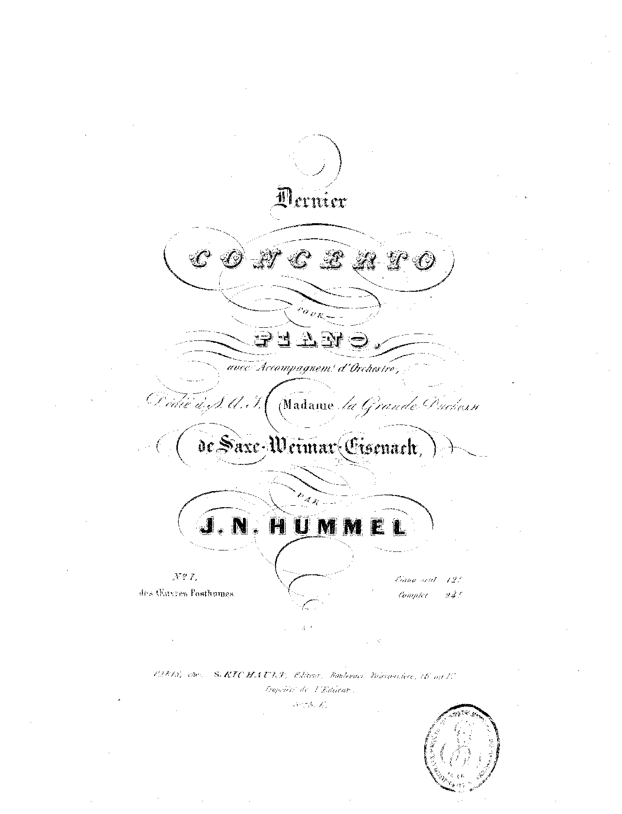 | Dedication | Madame la Grande Duchesse de Saxe-Weimar Eisenach |
