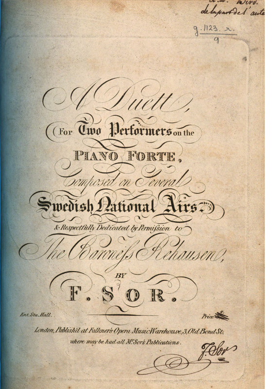 | Alternative. Title | A Duett for two performers on the piano forte, composed on several Swedish national airs |