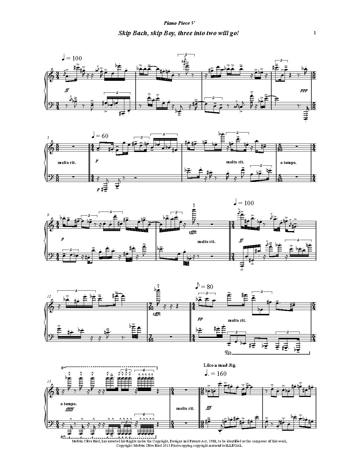 Melvin Bird has asserted his right under the Copyright, Designs and Patents Act, 1988, to be identified as the composer of this work. Please contact the composer for further information. The composer welcomes any performances and recordings. melvin.bird@hotmail.com. A clear and clean text.
