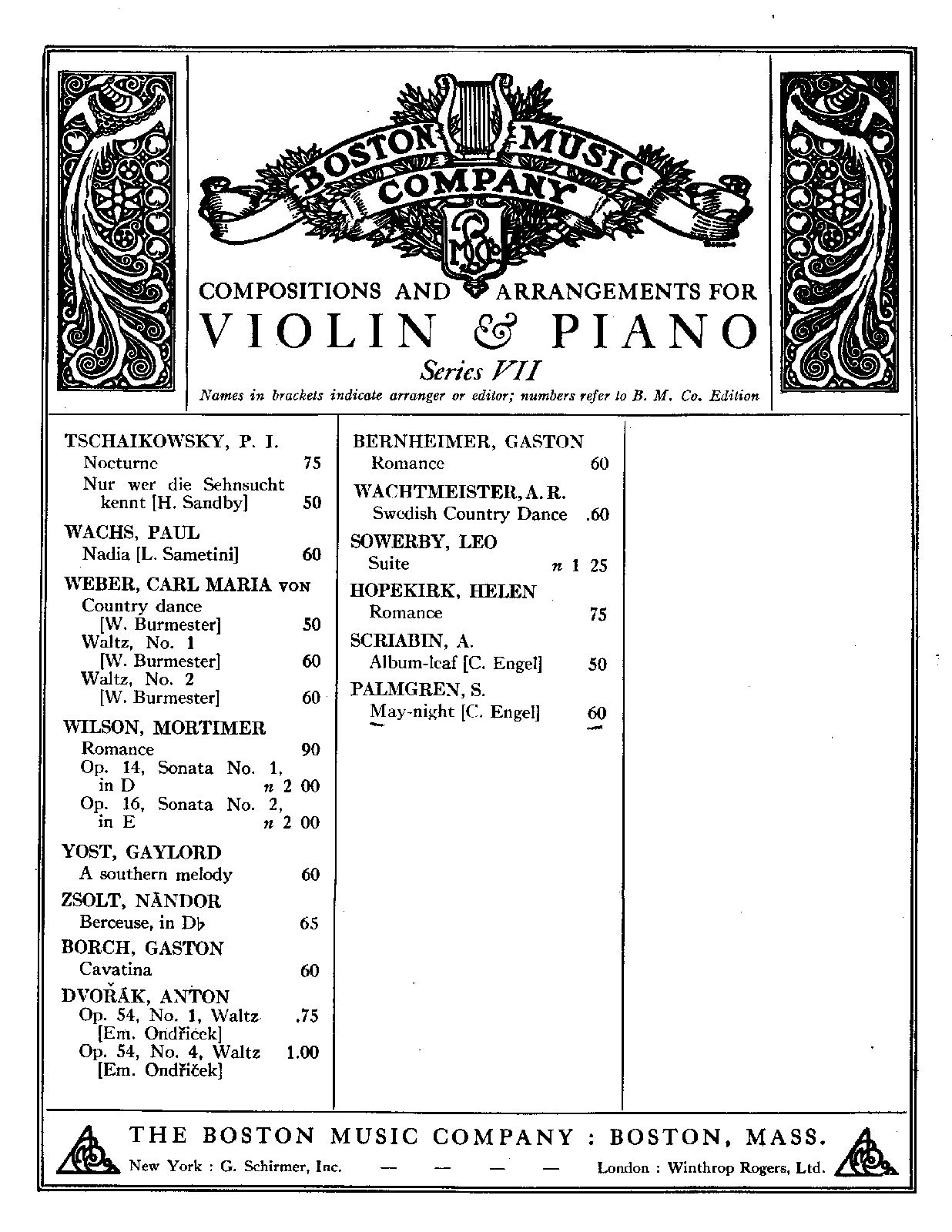 Boston: Boston Music Company, 1919. Plate B.M. Co. 6169.