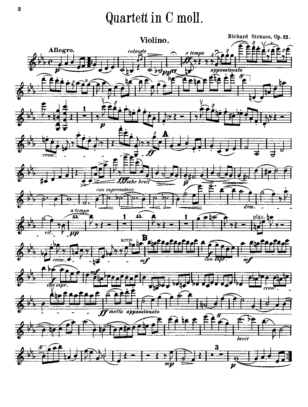 Quatuor pour piano et cordes; Klavierquartett c-Moll; Piano Quartet in C minor; 鋼琴四重奏(史特勞斯)