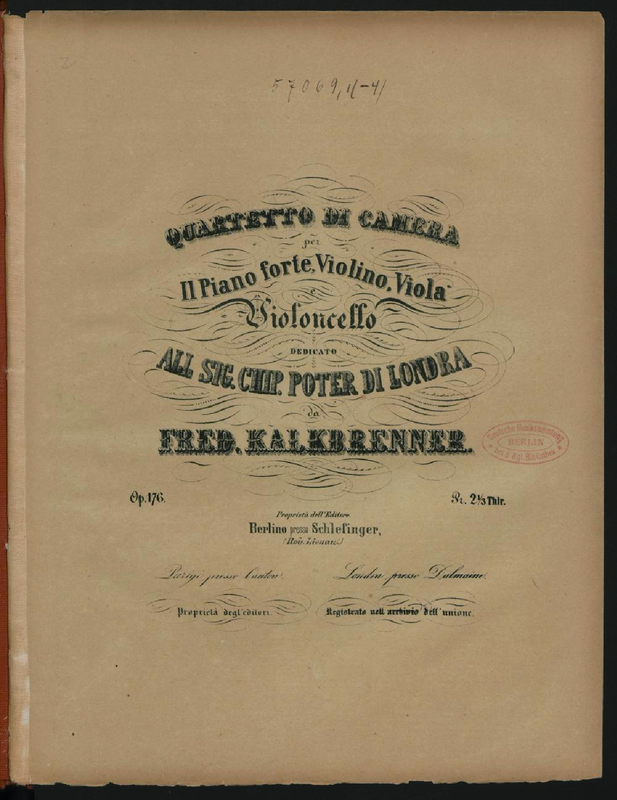 Quartetto Di Camera per il piano forte, violino, viola e vioncello op.176