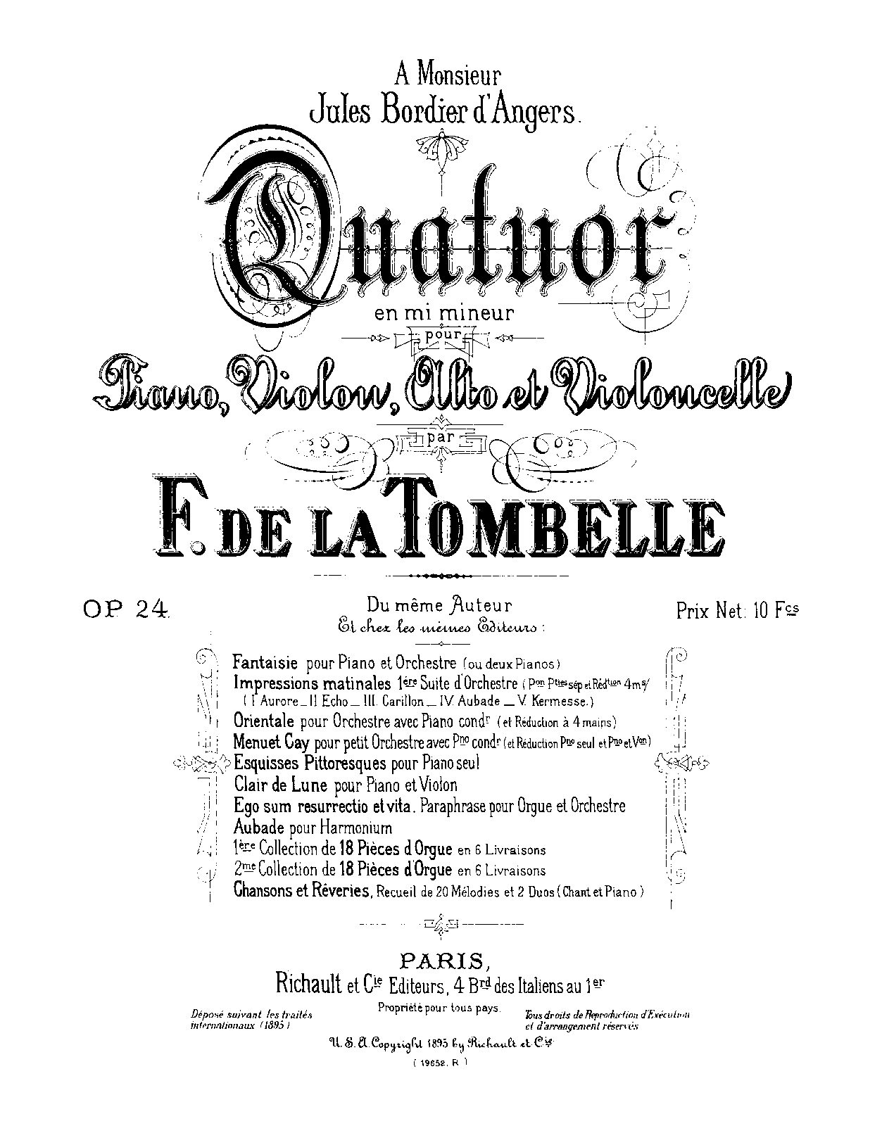 | Alternative. Title | Quatuor en mi mineur pour piano, violon, alto et violoncelle |