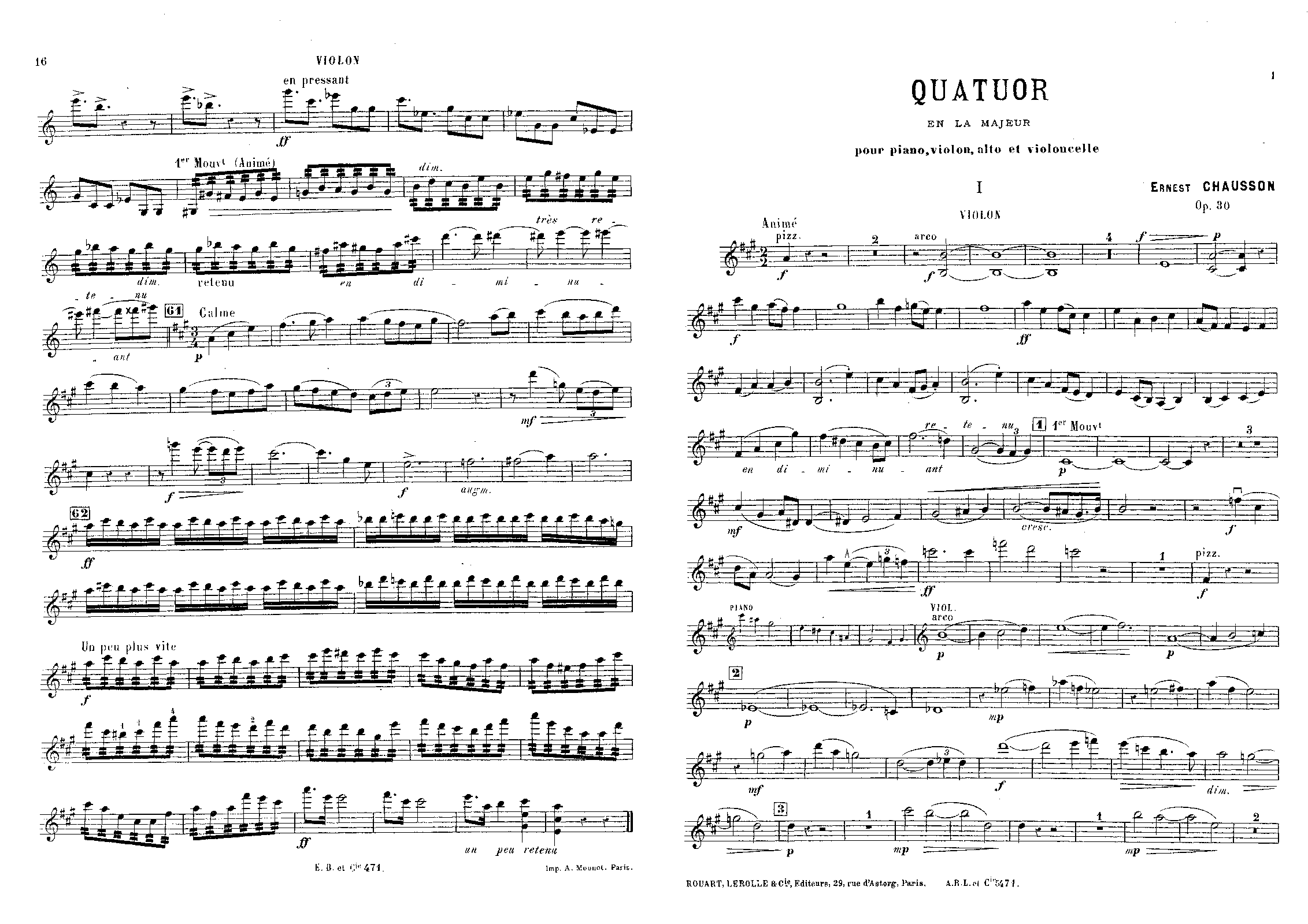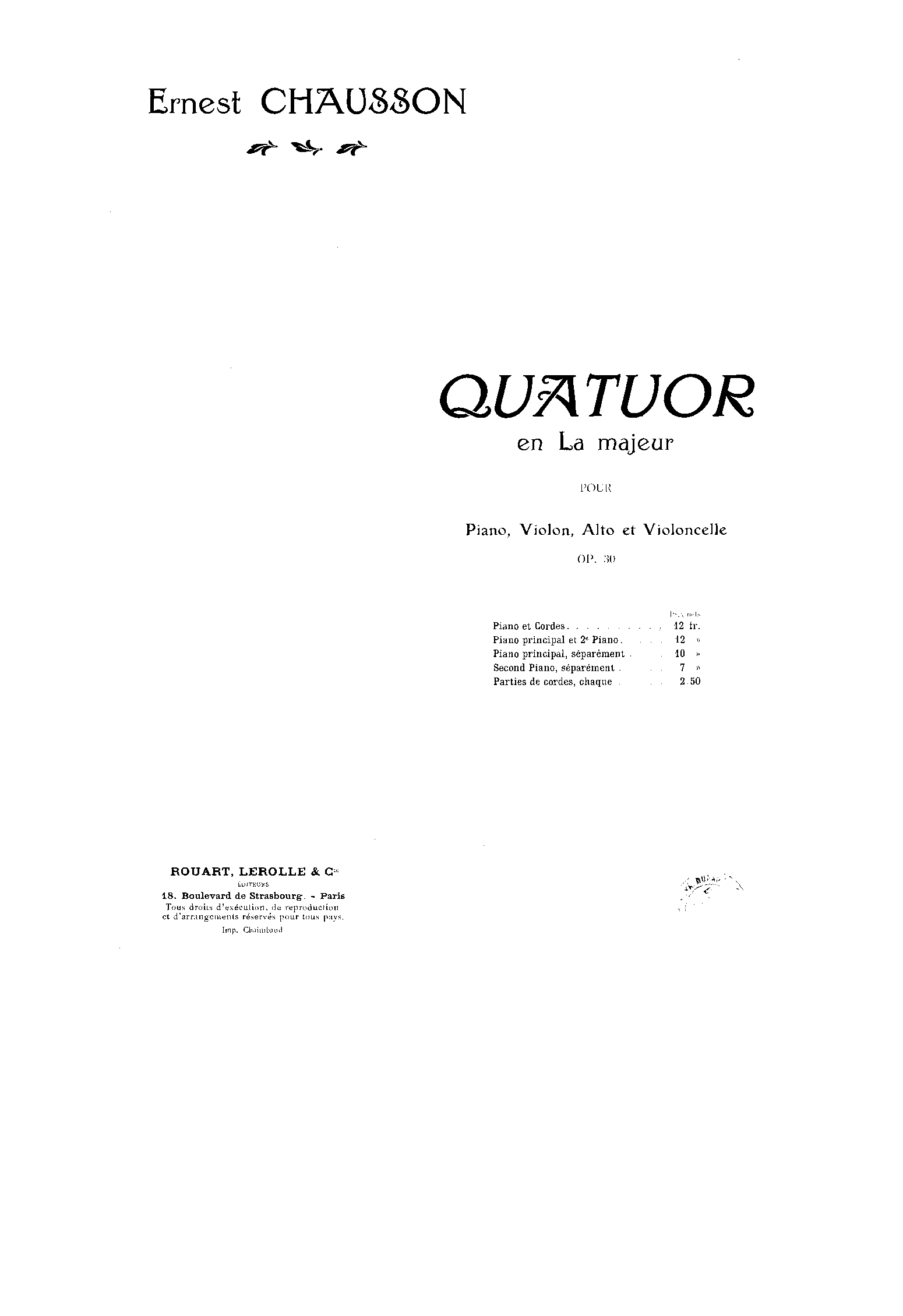 Quatuor pour piano et cordes; Klavierquartett; ピアノ四重奏曲イ長調