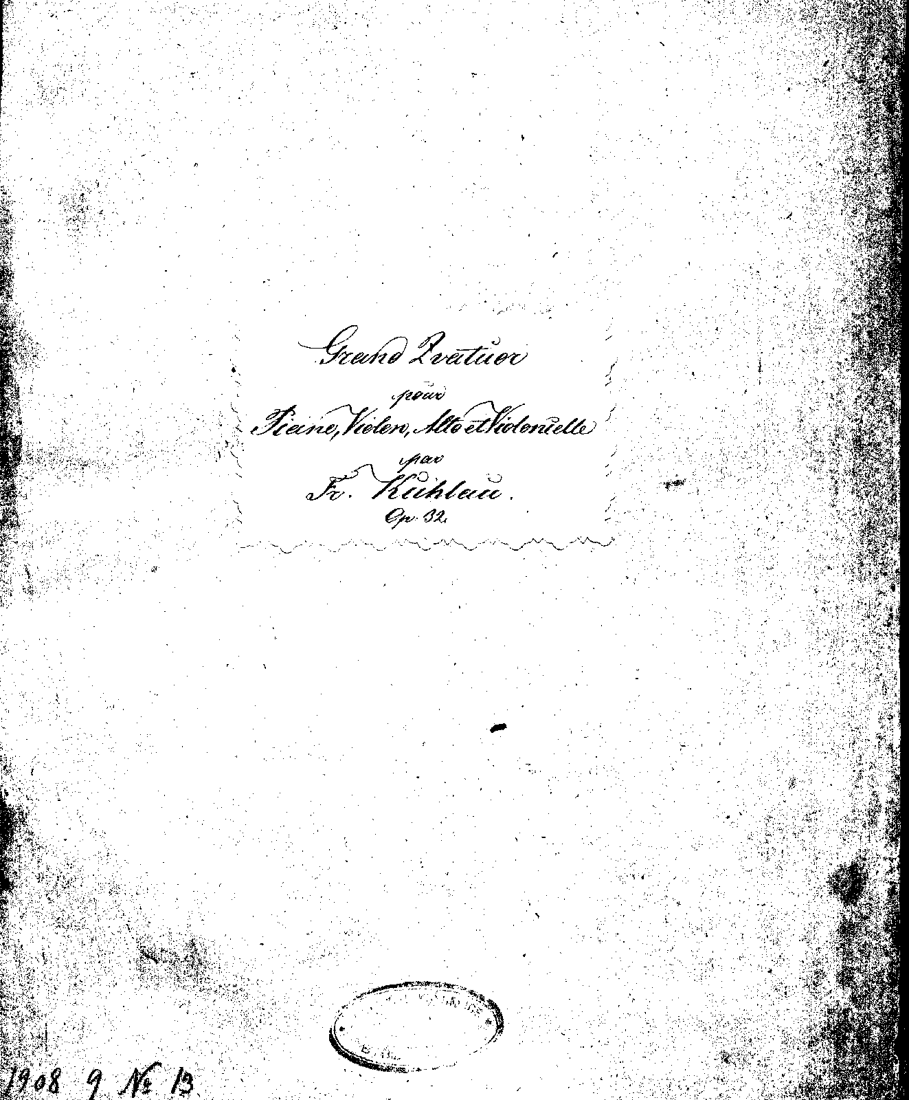 | Genre Categories | Quartets; For violin, viola, cello, piano; Scores featuring the violin; |