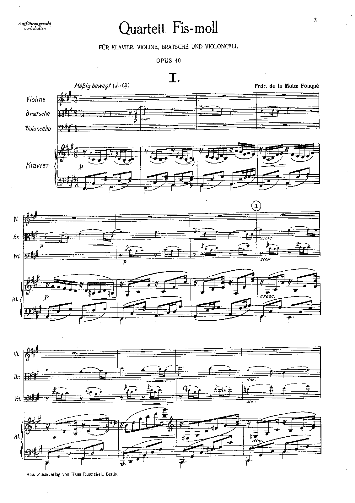 | Alternative. Title | Quartett fis-moll für Klavier, Violine, Bratsche und Violoncell |