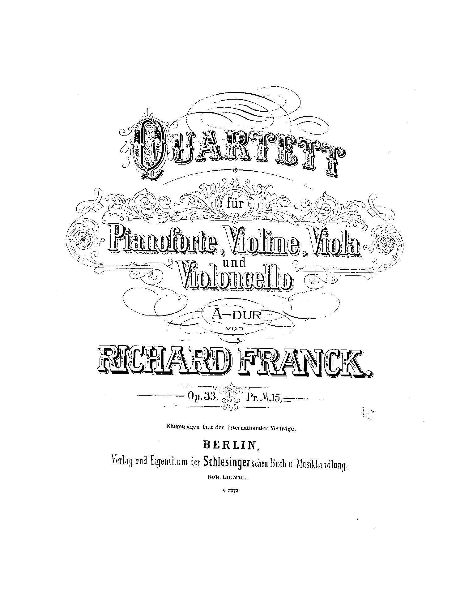 | Genre Categories | Quartets; For violin, viola, cello, piano; Scores featuring the violin; |