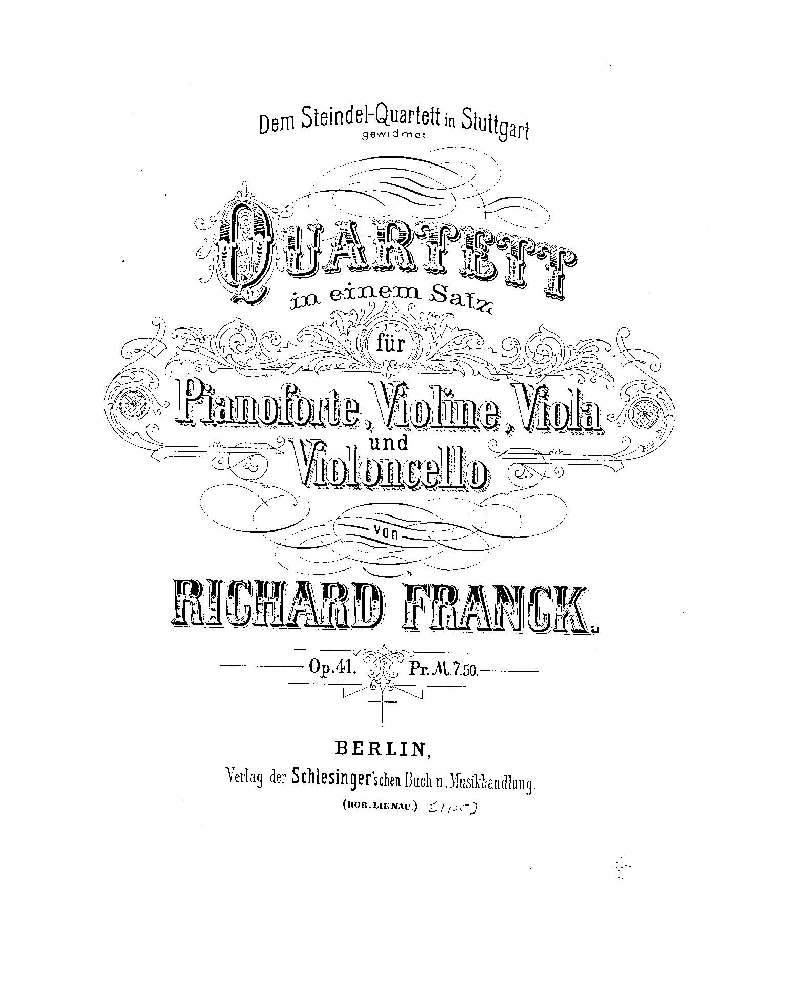 | Genre Categories | Quartets; For violin, viola, cello, piano; Scores featuring the violin; |