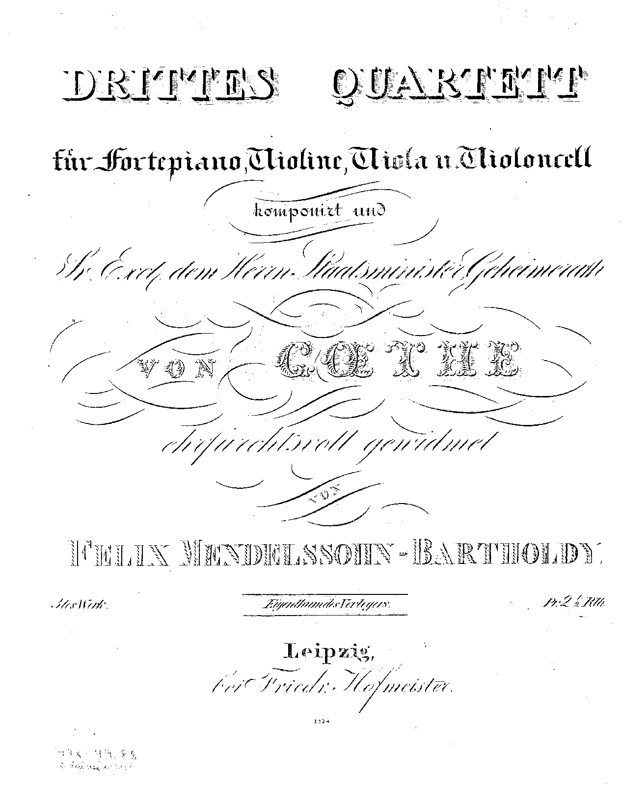 Quatuor avec piano nº 3 de Mendelssohn; Piano Quartet No. 3; Klavierquartett Nr. 3; 第3号钢琴四重奏; ピアノ四重奏曲第3番 (メンデルスゾーン)