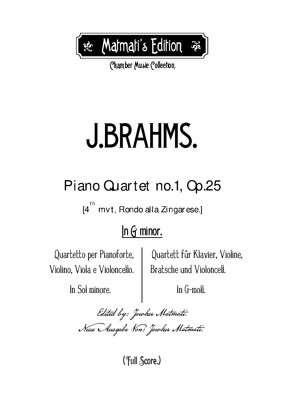 | Alternative. Title | Klavier-Quartett Nr.1 |
