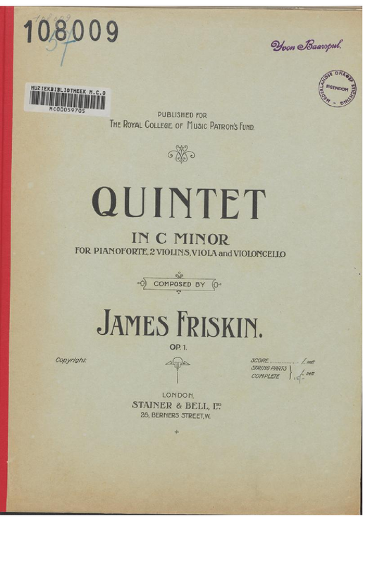 | Genre Categories | Quintets; For 2 violins, viola, cello, piano; Scores featuring the violin; |