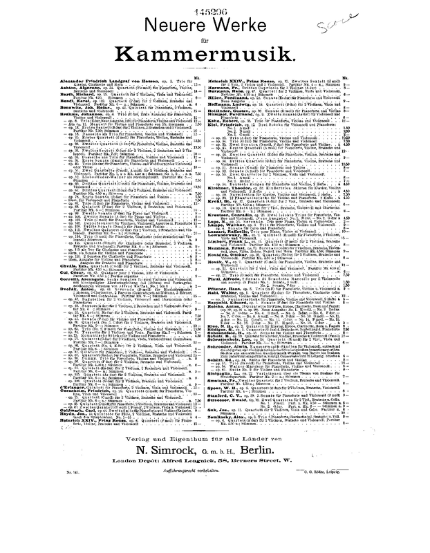 | Genre Categories | Quintets; For 2 violins, viola, cello, piano; Scores featuring the violin; |