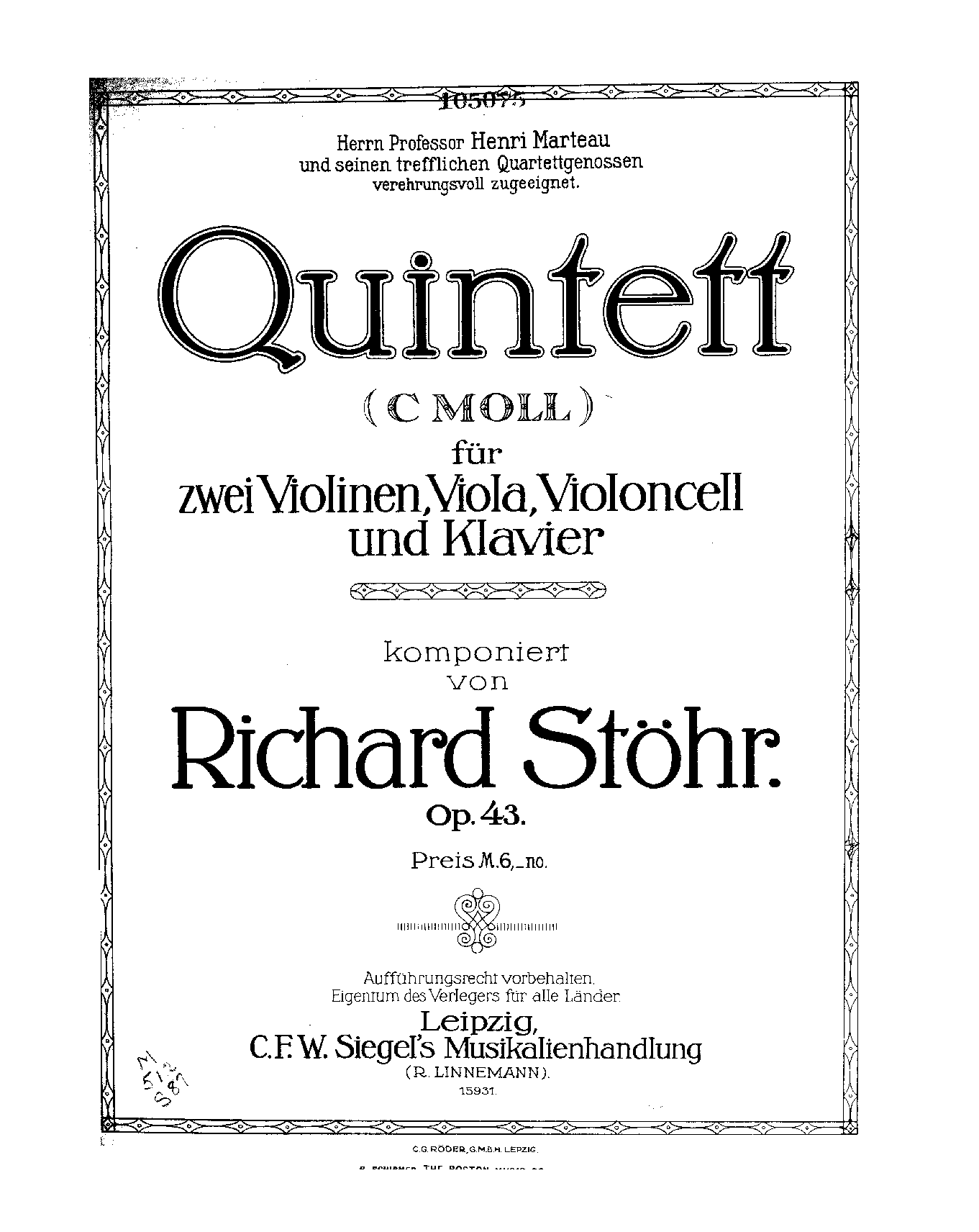 | Dedication | Henri Marteau (und seinen trefflichen Quartettgenossen verehrungsvoll zugeeignet) |
