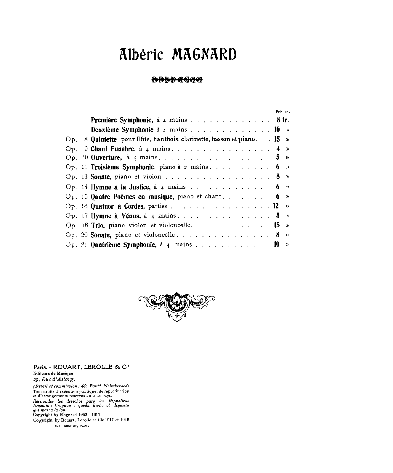 DKB copy of score and parts has a clear Rouart copyright date- "1917 et 1918"- no guessing required (on the page before the score starts, a list of compositions by Magnard).