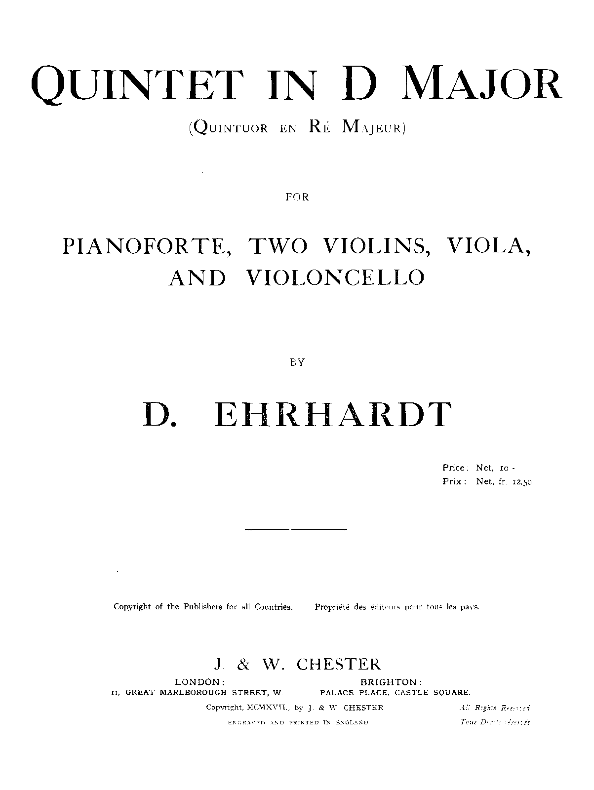 | Genre Categories | Quintets; For 2 violins, viola, cello, piano; Scores featuring the violin; |