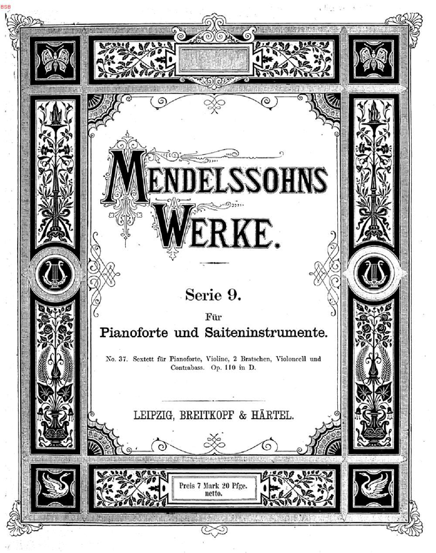 | Name Aliases | Секстет Ре мажор для фортепиано, скрипки, двух альтов, виолончели и контрабаса; Секстет (Мендельсон); Sextet in D Major, Op. 110; op. 110; MWV Q 16; |