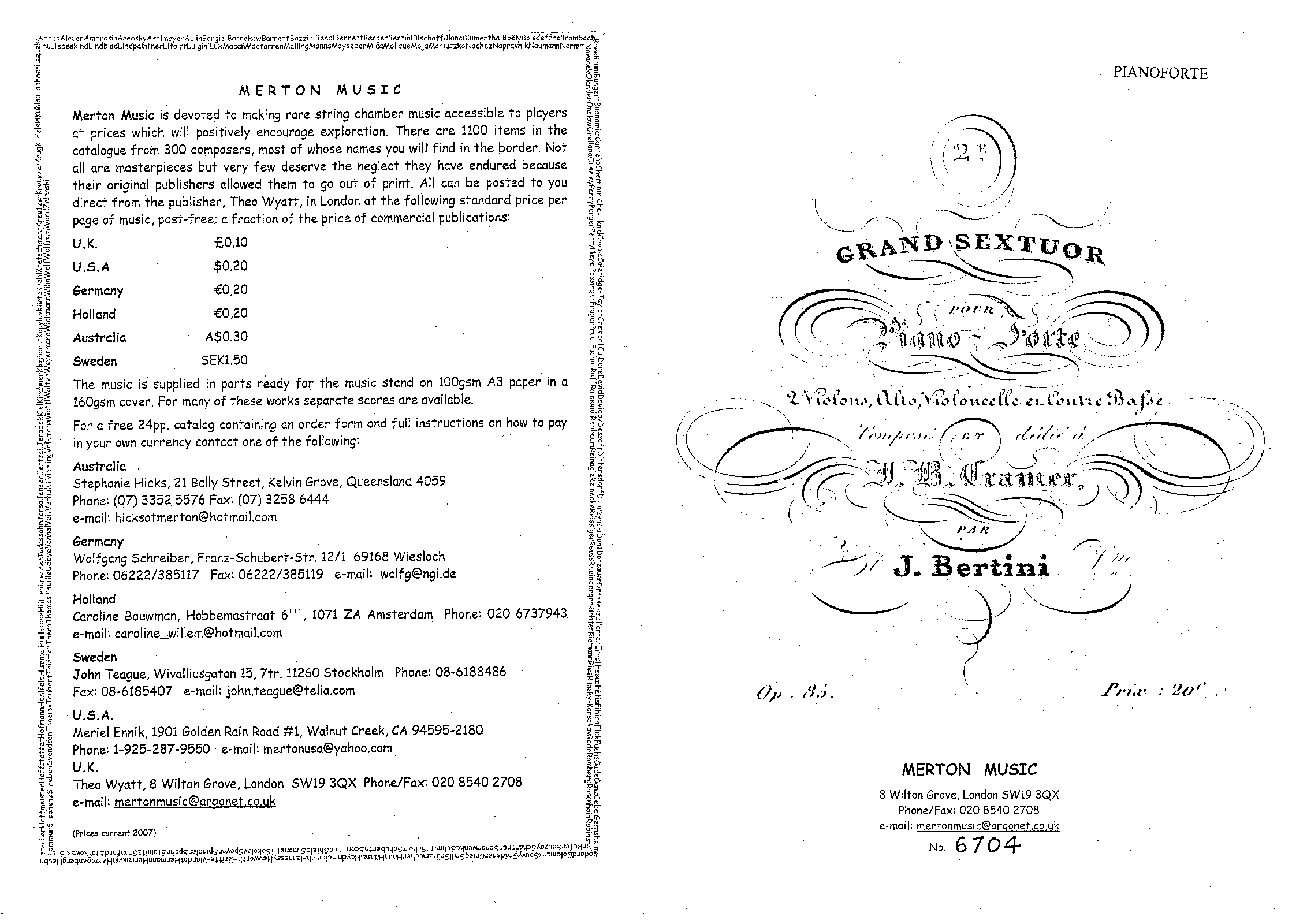 | Genre Categories | Sextets; For 2 violins, viola, cello, double bass, piano; Scores featuring the violin; |
