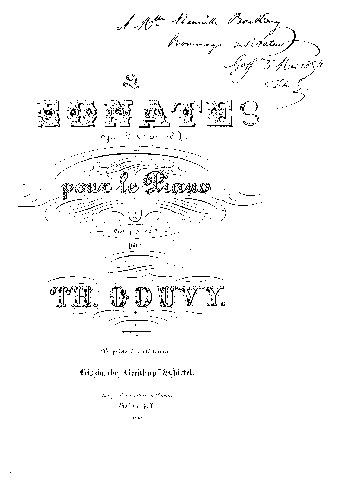 | First Publication. | 1854 – Leipzig: Breitkopf und Härtel |