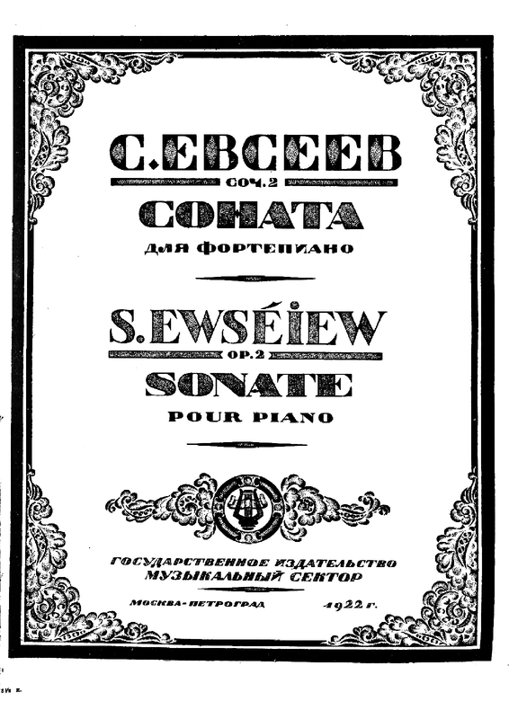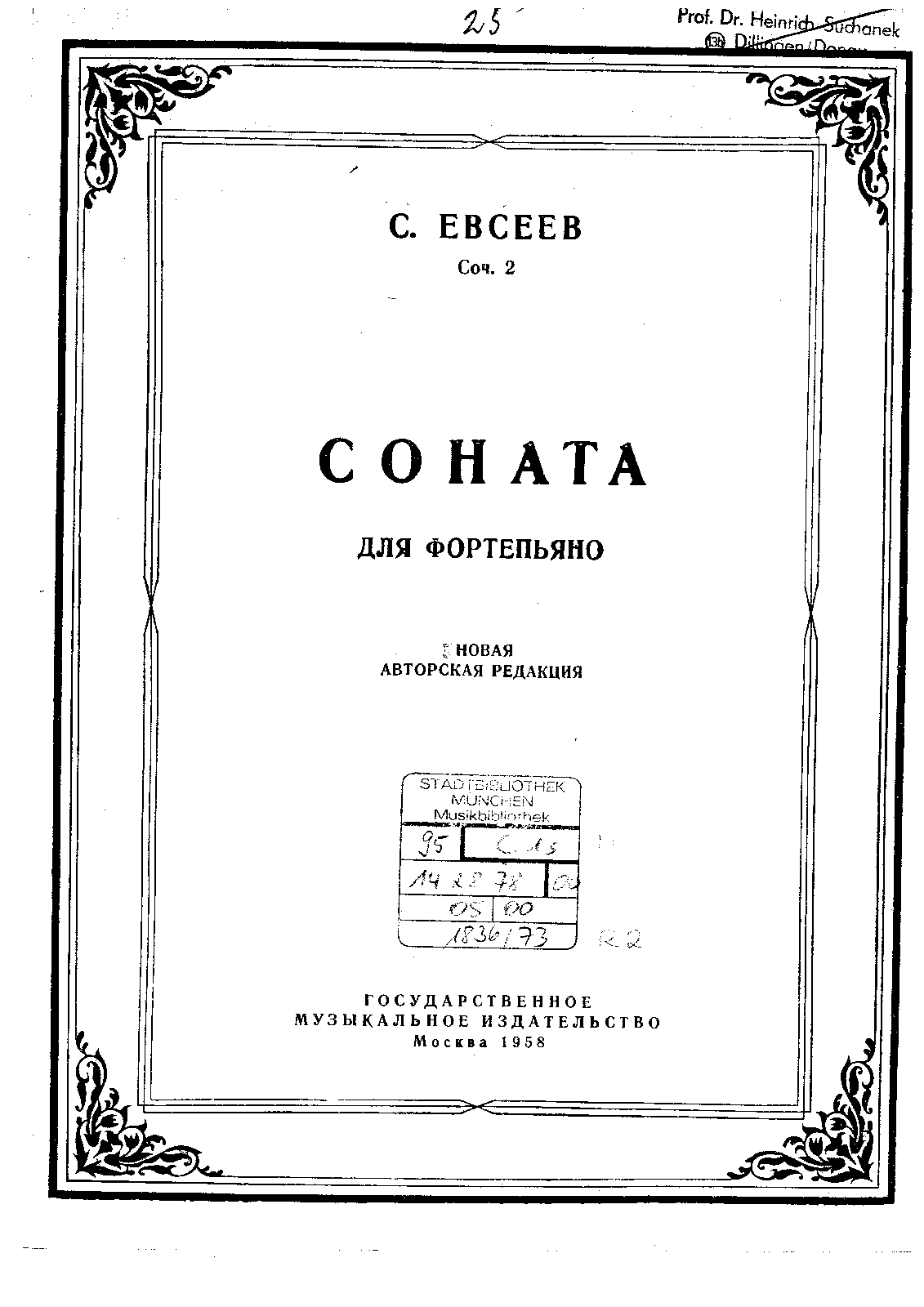 | Extra Information | Revised by the composer in an edition released two years after his death. There are three piano sonatas by Yevseyev it seems - Op.2, Op.15 (sonata-skazka) and Op.63 (vtoraia (2nd) sonata, ©1961). |