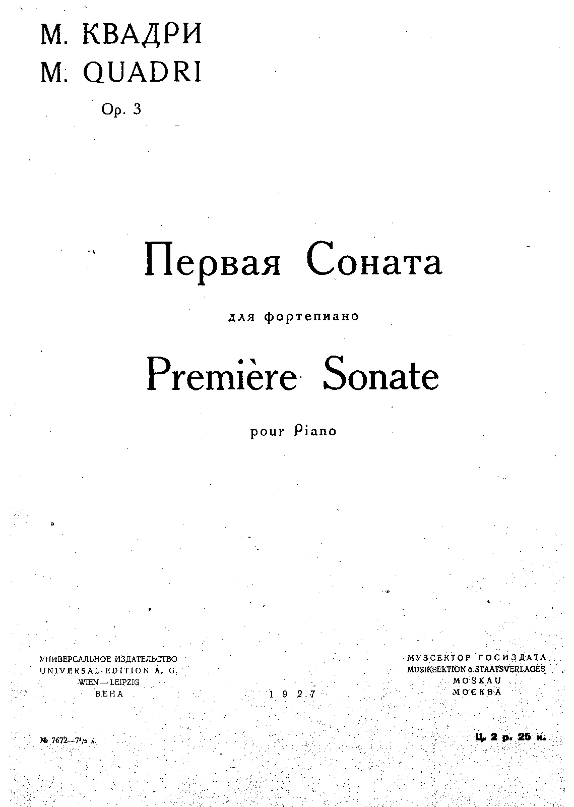 Moscow: Muzsektor Gosizdata, 1927. Plate M. 7672 Г. Co-issue - Vienna: Universal Edition, 1927. Plate U.E. 9011.