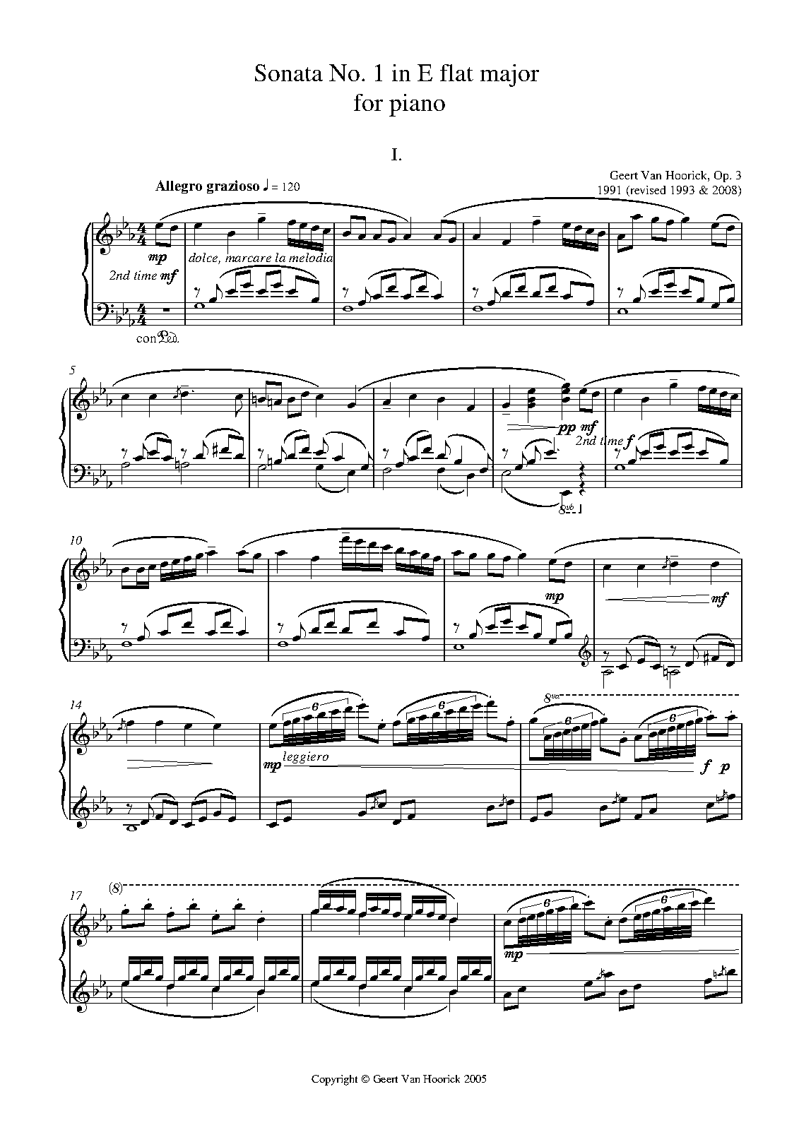 | Extra Information | This Piano Sonata is a neo-classical composition. It consists of 3 movements. The 1st movement is moderately fast and in sonata form, with a gracious main theme, the 2nd movement is a moderately slow waltz, the finale is fast, humorous and in rondo form. Digital performance using Sibelius 5 and Garritan Personal Orchestra. Score moving videos on my YouTube-channel. |