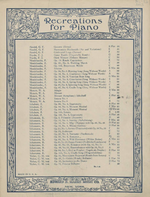 Publisher. Info. 19 Sonatas for the Piano, Sonata I