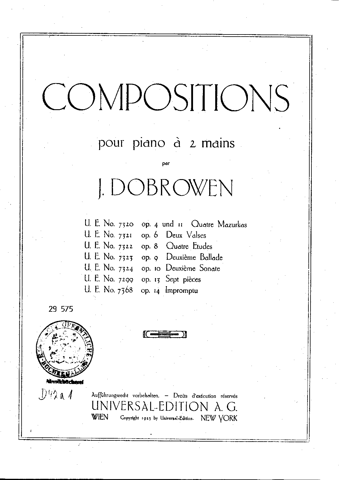 Vienna: Universal-Edition, 1924. Plate U.E. 7324.