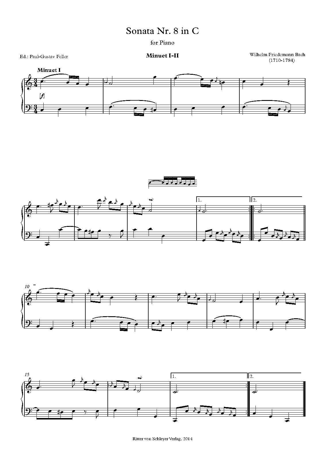 Two versions. F.1a has minuet and trio, while F.1b has a brief slow movement, for 2nd movement.
