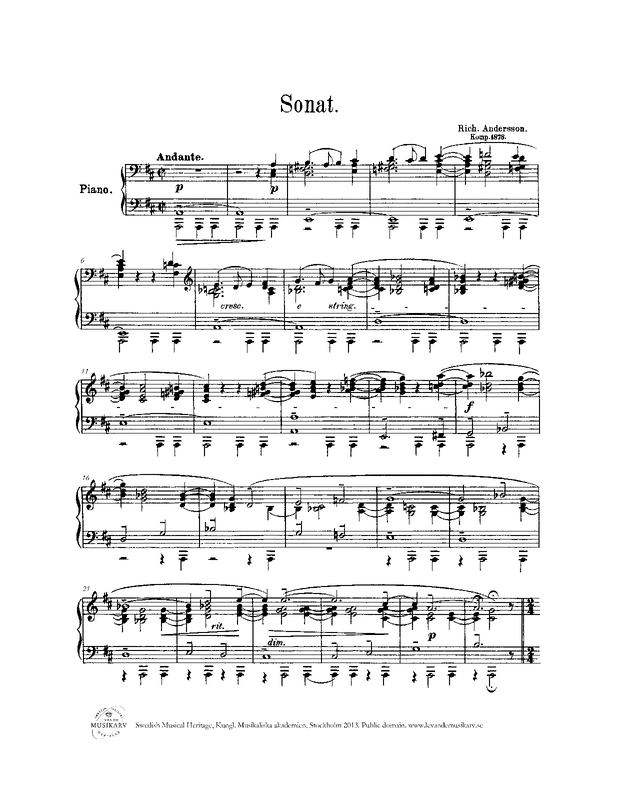 | First Performance. | 1891 in Stockholm, Richard Andersson, piano |