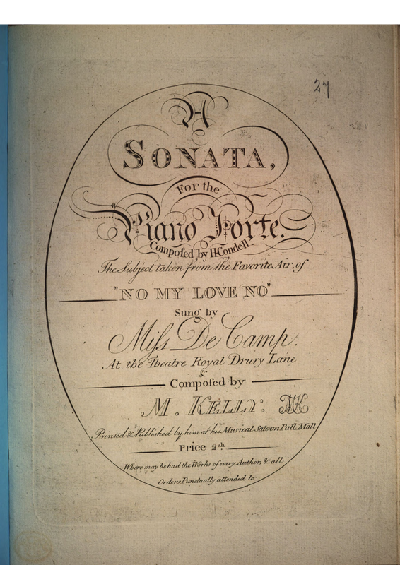 | Alternative. Title | A Sonata, for the Piano Forte. Composed by H. Condell. The Subject taken from the Favorite Air of "No my love no" sung by Miss De Camp at the Theatre Royal Drury Lane & composed by M. Kelly |