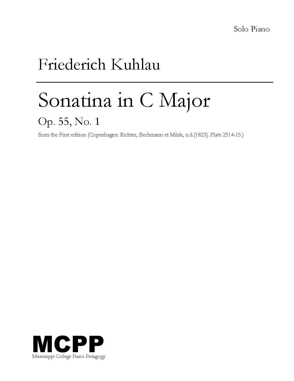 | First Publication. | 1823 in 6 Sonatinas, Op.55 (No.1) |