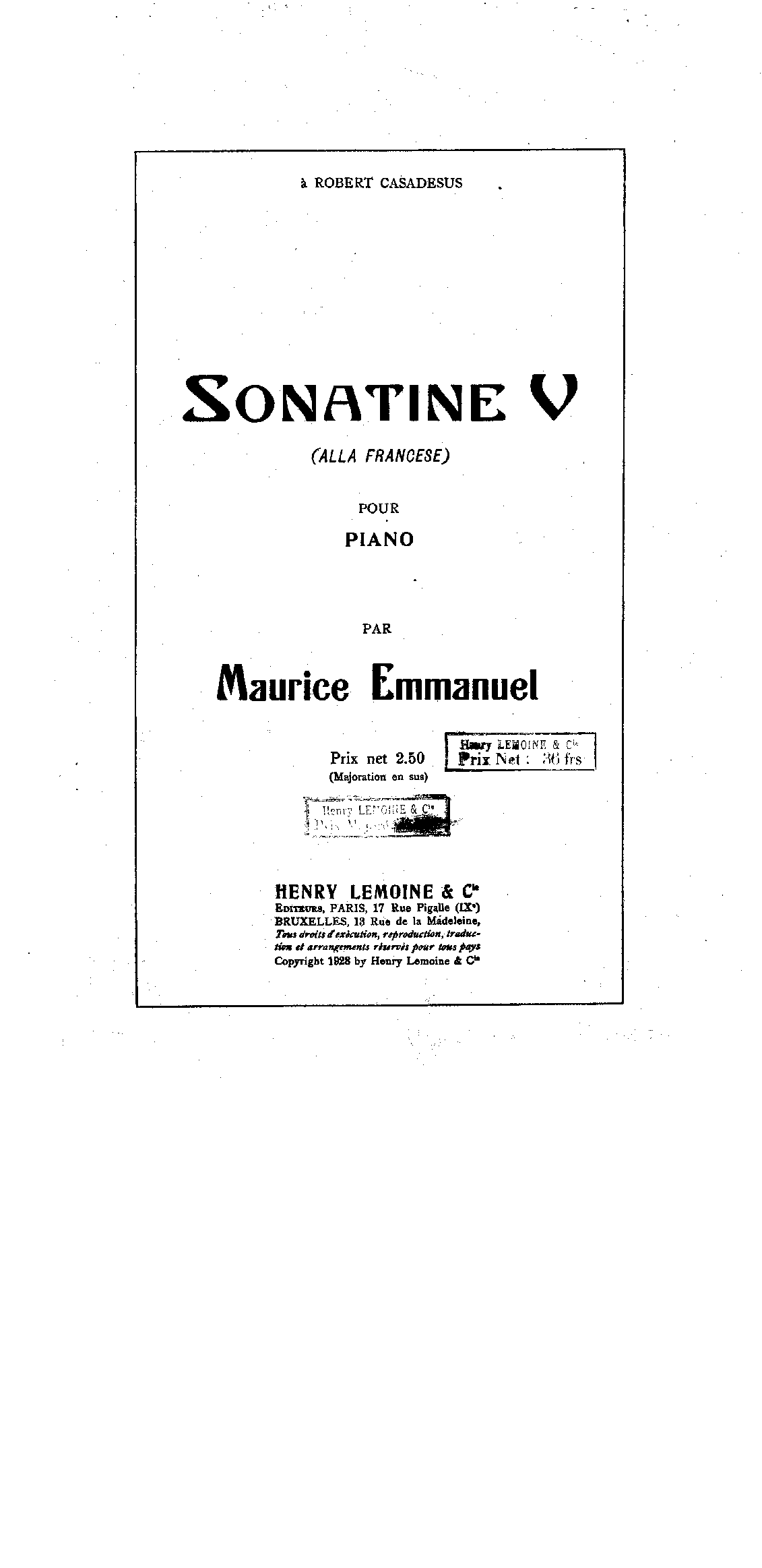 Sonatine n° 5; Sonatine op. 22; Cinquième Sonatine