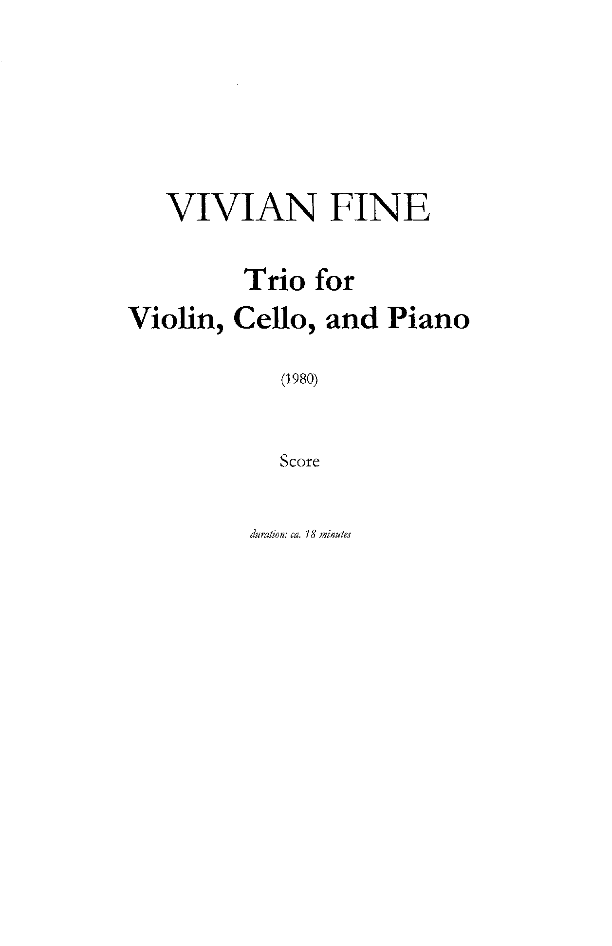 During the fall of 1980 Fine completed another commission, Trio for Violin, Cello, and Piano (1980) for the Mirecourt Trio. She wrote a large, complex, and demanding piece of two movements that are divided into sections. The movements are about equal in length, making the design symmetrical, and having a formal plan of ABC AB’D. Movement one’s A section begins with a sixteenth-note canon between the violin and cello lasting nine measures. When composing the original line, Fine was careful not to repeat patterns, and a few places where she did are disguised with changes in phrasing. Similar to the opening of Teisho, the pitches from this original background texture are reused throughout the Trio. The B section presents “pesante e mercato” lines set in textures that repeat and recombine, while C is a passacaglia in memory of Gregor Piatigorsky, who died in 1976. The eight-measure passacaglia theme is repeated eight times in a series of growing complexities….The second movement’s A section begins with a piano texture derived from the Trio’s opening canon and uses similar material as the initial A, enhanced with rescoring, added counterpoints, and canons….[the final section] is an elegy on a theme by Ravel paralleling the earlier passacaglia.