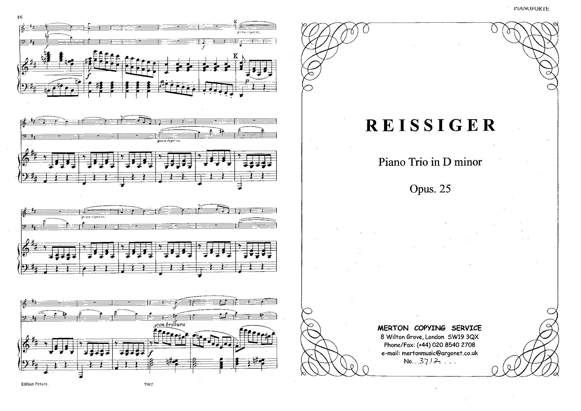| Genre Categories | Trios; For violin, cello, piano; Scores featuring the violin; |