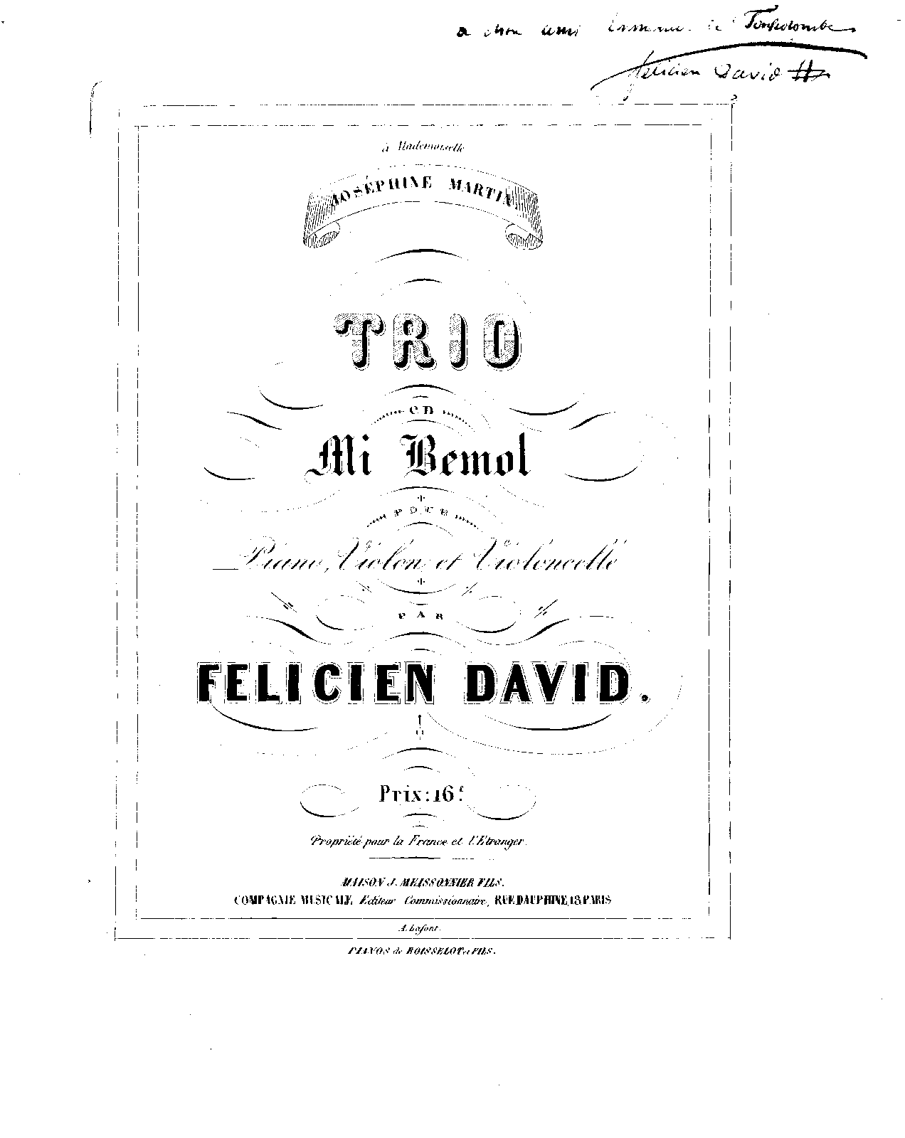 The tempo for the adagio seems a bit fast though the 12/8 metre may help explain that. Marco Polo recorded David's 2nd and 3rd trios but it seems not the first, which is however available in a Palazetto Bru Zane set. Martin premiered the work with Gros and Lebouc.