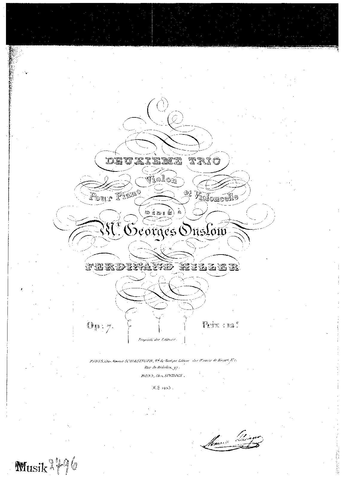 A previous claim that Lemoine published Hiller's second and third trios in 1830 is now doubtful. BNF claims a date of ca.1830 but the plate number 2770 HL places the publication date in 1842 according to Lemoine's plate table.