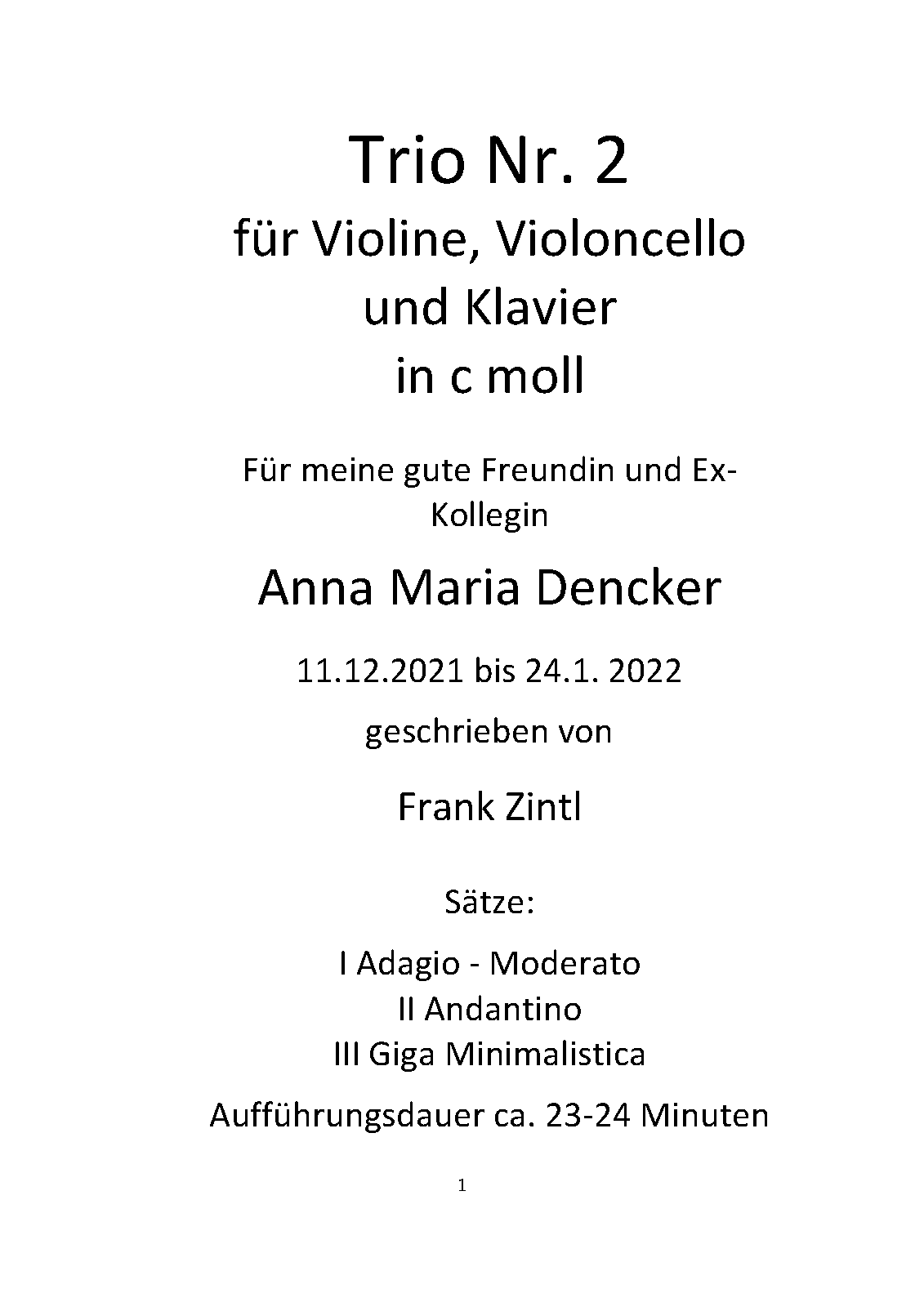 This work was written 11 dec. 2021 to 24 jan. 2022. Two of its three movements, nr 1 and 3, are minimalistic. The third movement uses the style of the early works of Steve Reich. The second movement is more like late romanticism.