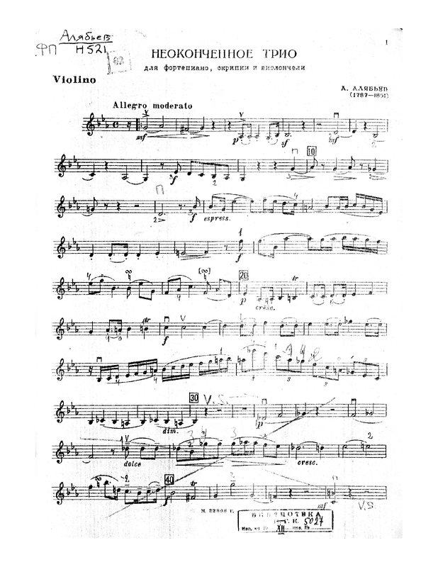Alternative. Title Unfinished . Neokončennoe trio [mi-bemolʹ-mažor] : Dlja fortepiano, skripki i violončeli