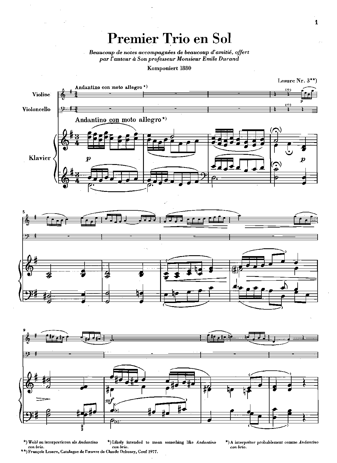 Name Translations Piano Trio; Trio en Sol; Trio en Sol M; ピアノ三重奏; Trío para piano; Klaviertrio G-Dur; Trio per pianoforte e archi (Debussy)
