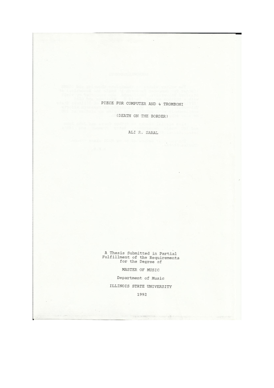 I kindly acknowledge Mr. John Chowning from CCRMA - Stanford and Dr. David B. Williams from ORAT - ILSTU, Dr. Arthur B. Corra and Mr. John Rehm from ILSTU Music dep, Ms. Betty Plummer and International Studies Office of ILSTU all of whom supported my work.