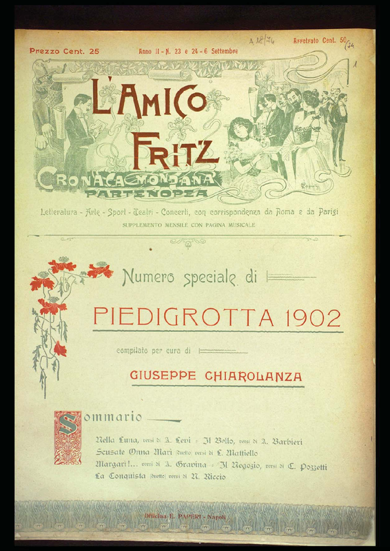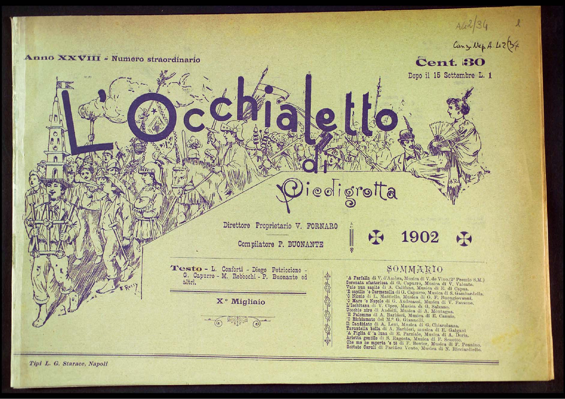 | Librettist | V. d'Ambra (1) Giovanni Capurro (2, 3, 30, 32, 33, 34) Aniello Califano (4, 16) Salvatore Di Giacomo (29, 31) Giuseppe Andreassi (11, 17, 25) Ferdinando Russo (36) L. Mattiello (5, 23, 24, 26) R. Andolfi (6) Antonio Barbieri (7, 10, 22) Antonio Levi (9) Enrico Parziale (12) F. Bovier (13) Salvatore Ragosta (14) Pacifico Vento (15) C. Pozzetti (18) N. Riccio (19) A. Levi (20) A. Gravina (21) V. Giordano (27) G. Serritiello (28) |