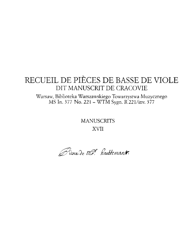 | Instrumentation | viol : bass gamba, viola da gamba |