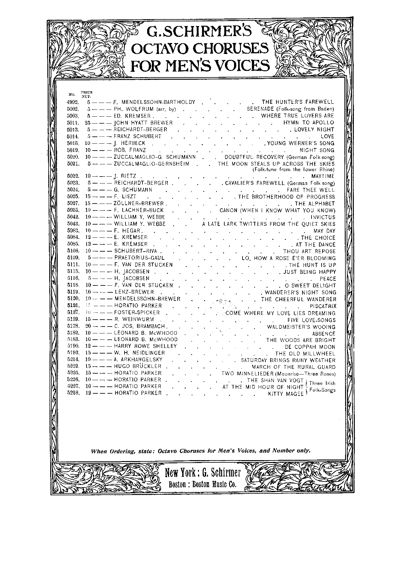 | Genre Categories | Secular choruses; Choruses; For male chorus; |