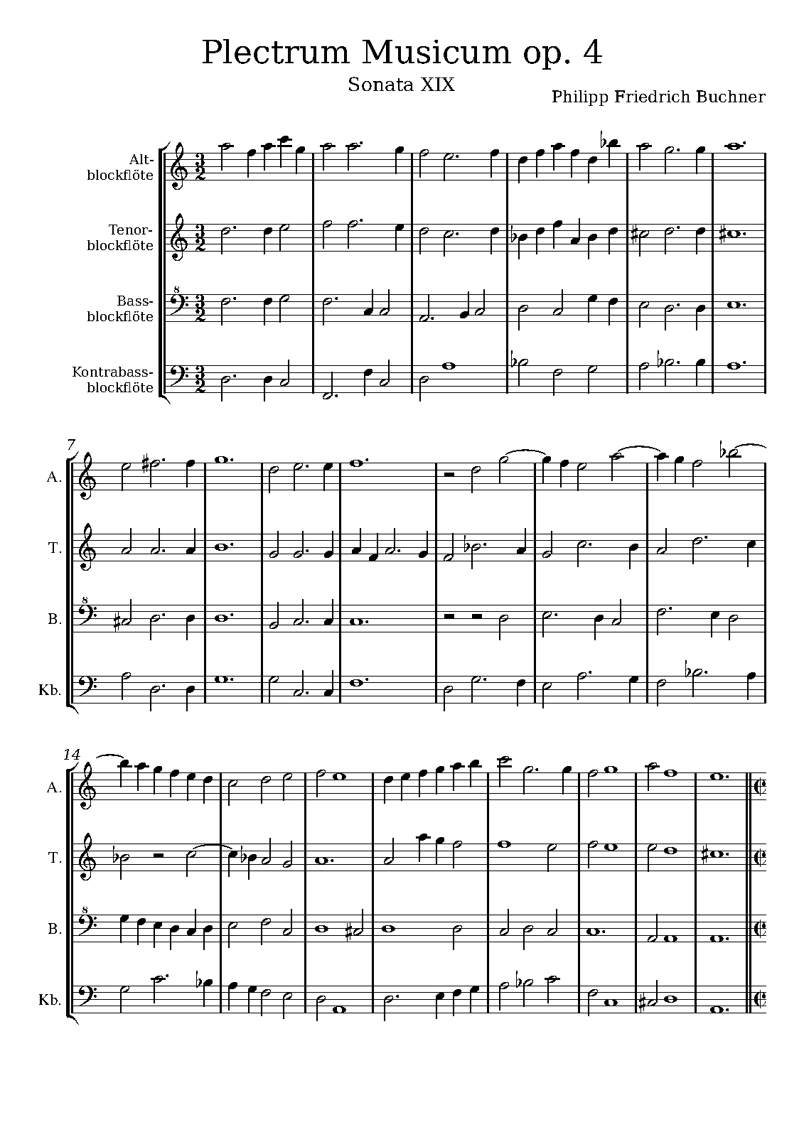 | Instrumentation | 2-5 instruments, continuo: 2 violins, continuo; violin, viola da gamba, continuo; violin, bassoon, continuo; 2 bassoons, continuo; violin, flauto (recorder) or viola da braccio, viola da gamba, continuo; 2 violins, bassoon, continuo; 2 violins, viola da braccio, bassoon, continuo; 2 violins, 2 violas da braccio, bassoon ad lib., continuo; 2 violins, viola da braccio, viola da gamba, bassoon, continuo |